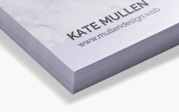 The front of your card will have whatever texture or finish you selected. The back will be a smooth, matte surface – great for adding notes, appointments or other information. Special finishes are available with standard and rounded corner business cards.